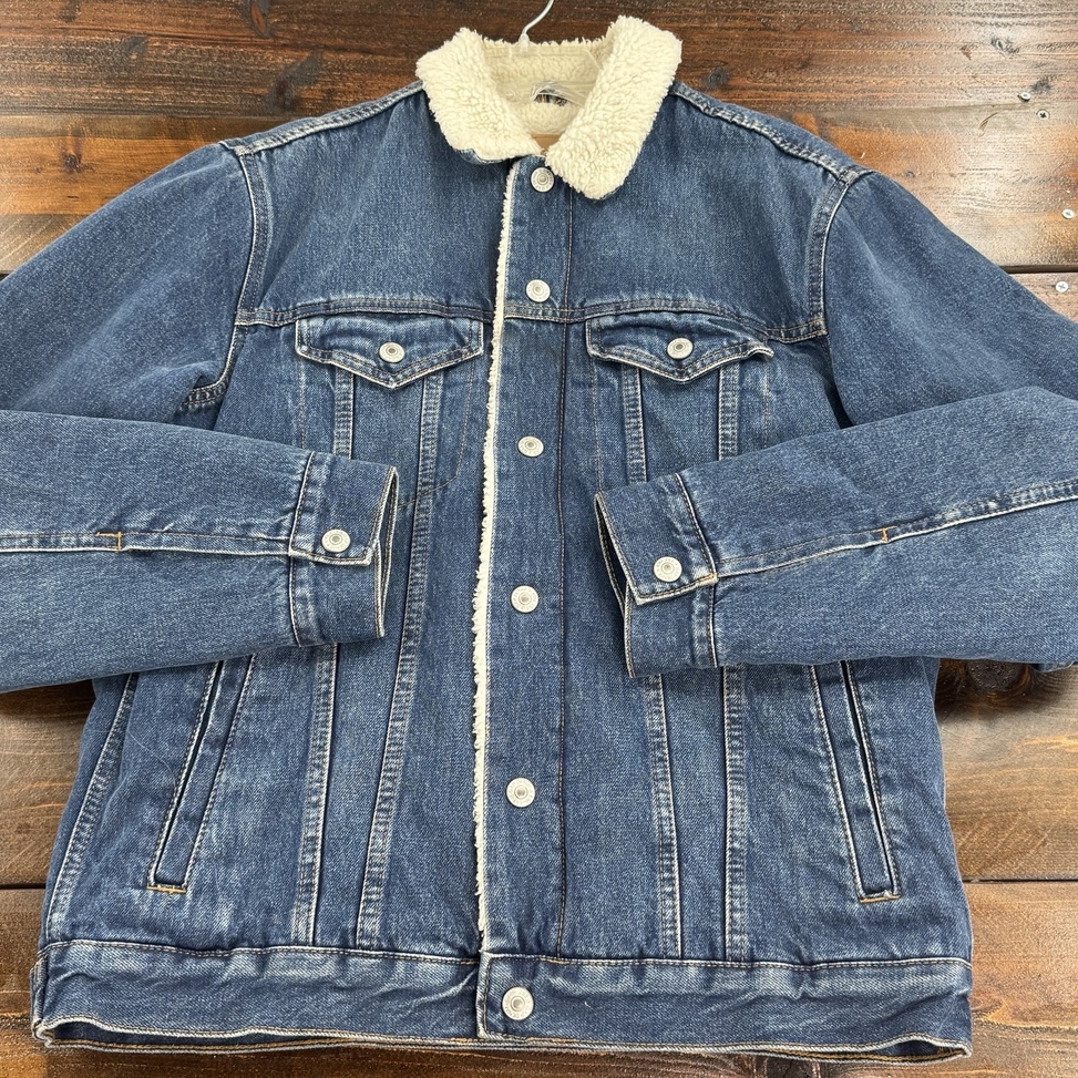 The Gap Denim Sherpa Lined Trucker Jacket is a stylish and versatile outerwear piece for men or women