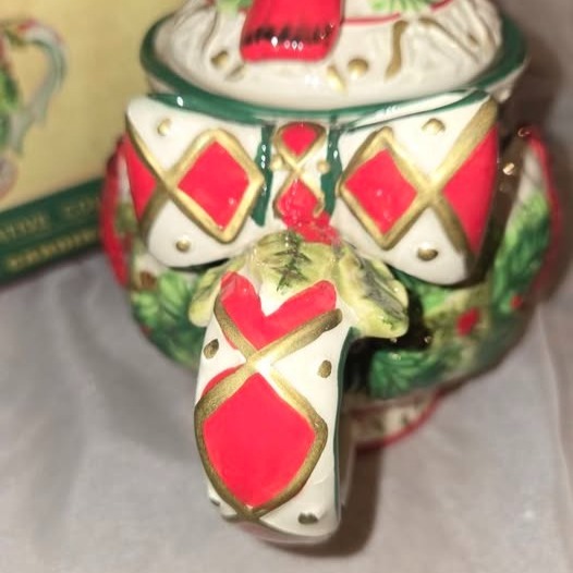 The Cracker Barrel Plaid Tidings Red Cardinal Tea Pot is a medium-sized ceramic tea pot with a festive plaid pattern and red cardinal bird design, perfect for a Christmas occasion. This retired item includes a lid and has one compartment, making it easy to serve tea during the holiday season. Made by Cracker Barrel, this glazed tea pot is 7.5" in height, 8.5" in width, and 5.5" in depth, with a colorful multicolor finish. Hand wash only, this seasonal-themed tea pot is a charming addition to any kitchen or collectibles collection.